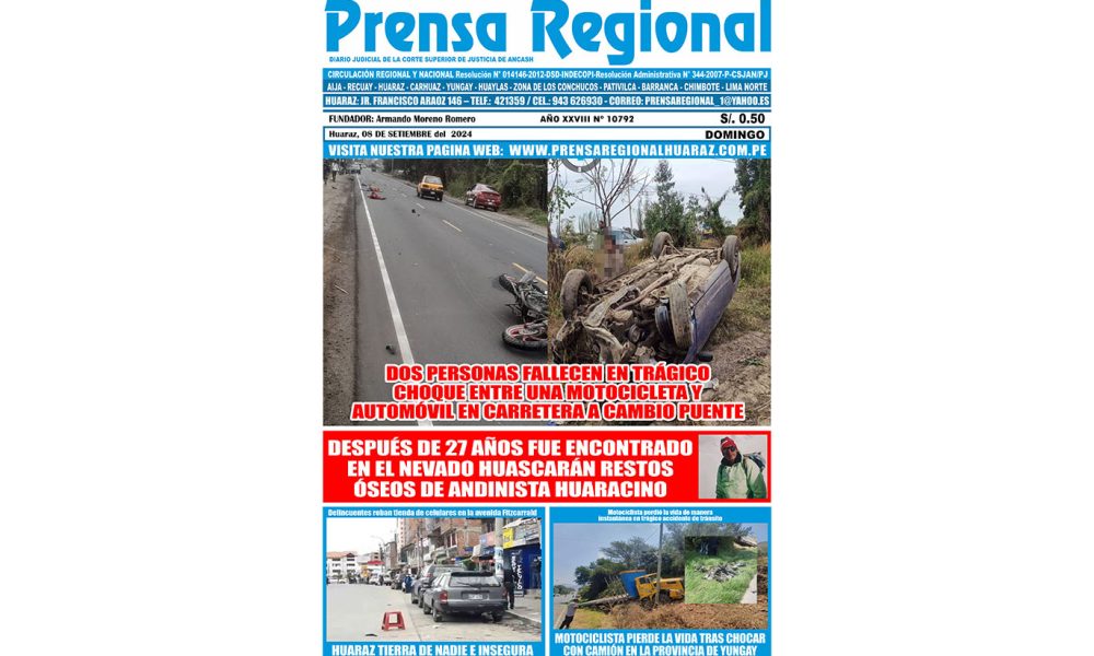 Carreteras de la sierra de Ancash se tiñen de sangre En la zona sierra de Ancash continúan los accidentes de tránsito con lamentables pérdidas de vidas...