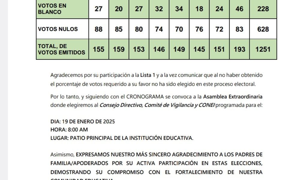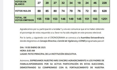 Única lista en el proceso electoral tuvo rechazo de la mayoría Los padres de familia del Colegio Santa Rosa de Viterbo de Huaraz, el último domingo...