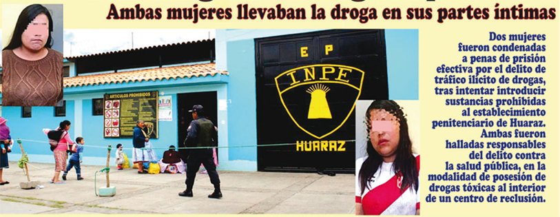 Huaraz: condenan a 2 mujeres por intentar ingresar drogas a penal